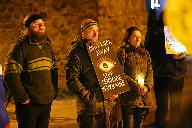 V průvodu, který v úterý večer v Jihlavě připomněl 1000 dnů od ruské agrese na Ukrajině, šly převážně ukrajinské ženy s dětmi a také několik Čechů.