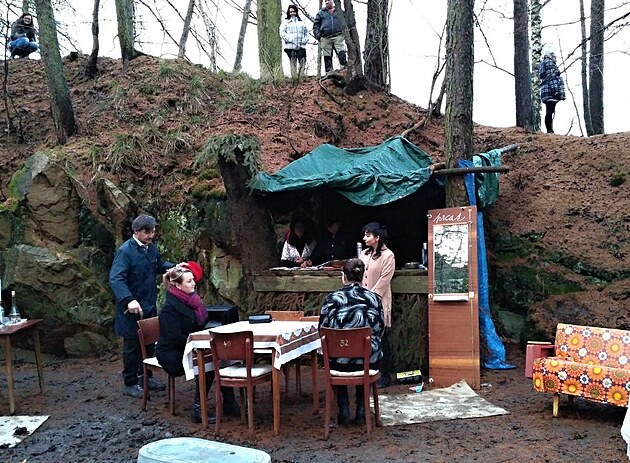 Na Hradisku, v bývalém lomu, jsou absolventi expedice odměněni divadelním kusem z dílny místních ochotníků.