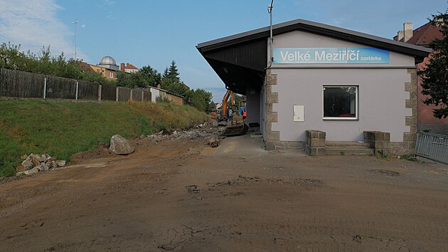 Prokouknout má i samotná budova velkomeziříčské železniční zastávky. Nové tam bude zázemí pro cestující, přibude ale také třeba úschovna jízdních kol. (15. září 2025)