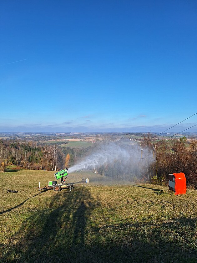 Správci lyžařského areálu Vysoká u Havlíčkova Brodu vyzkoušeli před polovinou listopadu i sněhová děla.