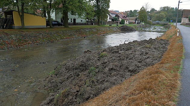 Těžká technika Povodí Moravy od počátku října v Strážku na Žďársku pracuje na údržbě vodního toku Bobrůvky.