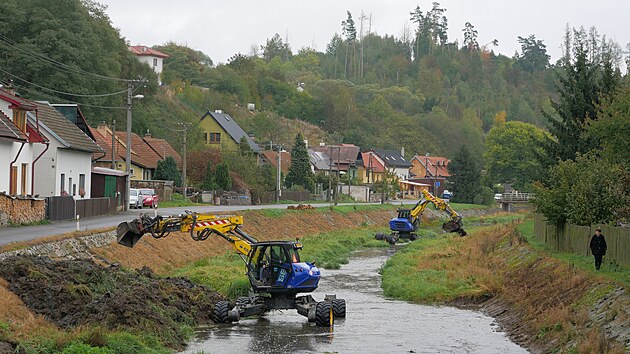 Těžká technika Povodí Moravy od počátku října v Strážku na Žďársku pracuje na údržbě vodního toku Bobrůvky.