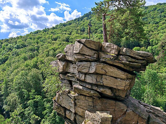 Vysoká skála, kam po vztyčení kříže dlouhá léta vedl ze stráně můstek, je spojována nejenom s horolezeckými výkony, ale i kdysi celorepublikově medializovanou mileneckou tragédií.