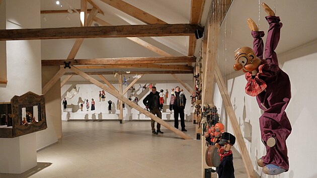 Podkrovní prostory Horácké galerie zaplnilo přes dvě stě loutek. Nechybí mezi nimi pohádkové bytosti, kejklíři, klauni, čerti či artisté.