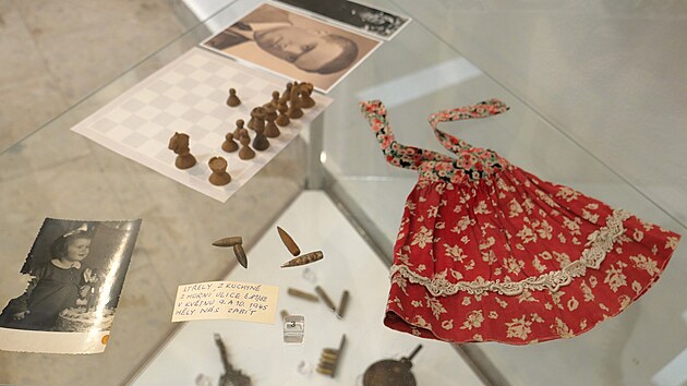Na výstavě jsou k vidění i šatičky panenky, již skutečná, tříletá Jarmilka Špinarová držela v rukou, když s rodinou obhlížela byt v Horní ulici zničený nacisty.