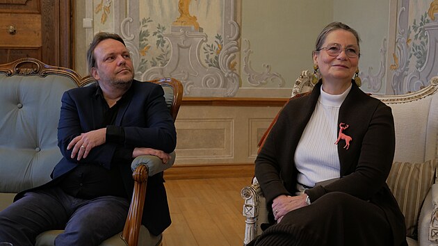Projekt kulturně kreativního centra, jež v areálu žďárského zámku vznikne, představila za majitele panství Marie Kinsky. Na snímku s Ondřejem Chrástem, náměstkem ministra kultury.