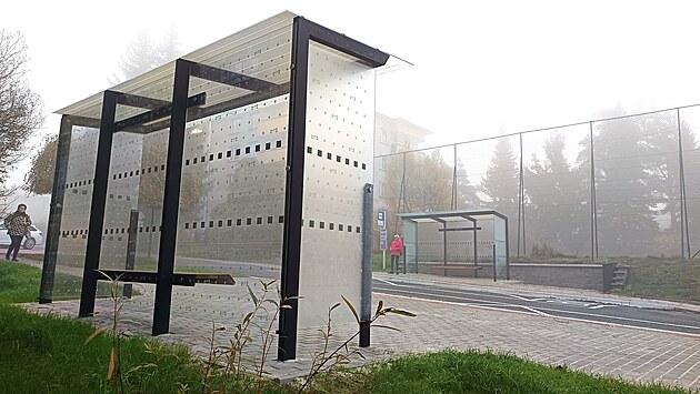 Zastávka v Květné ulici ve čtvrti Vysočany už má vzorek proti nárazům vygravírovaný z výroby.
