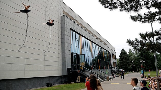 Sedmnáct metrů nad zemí. Španělské umělkyně předvedly dechberoucí vertikální tanec.