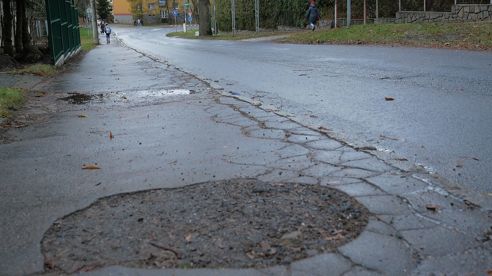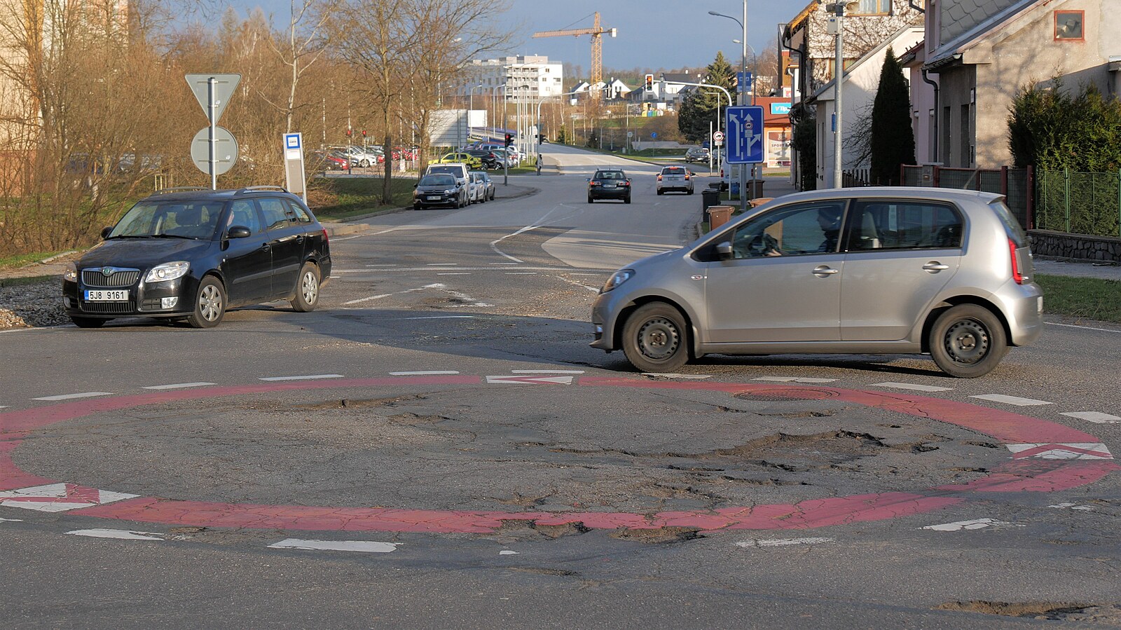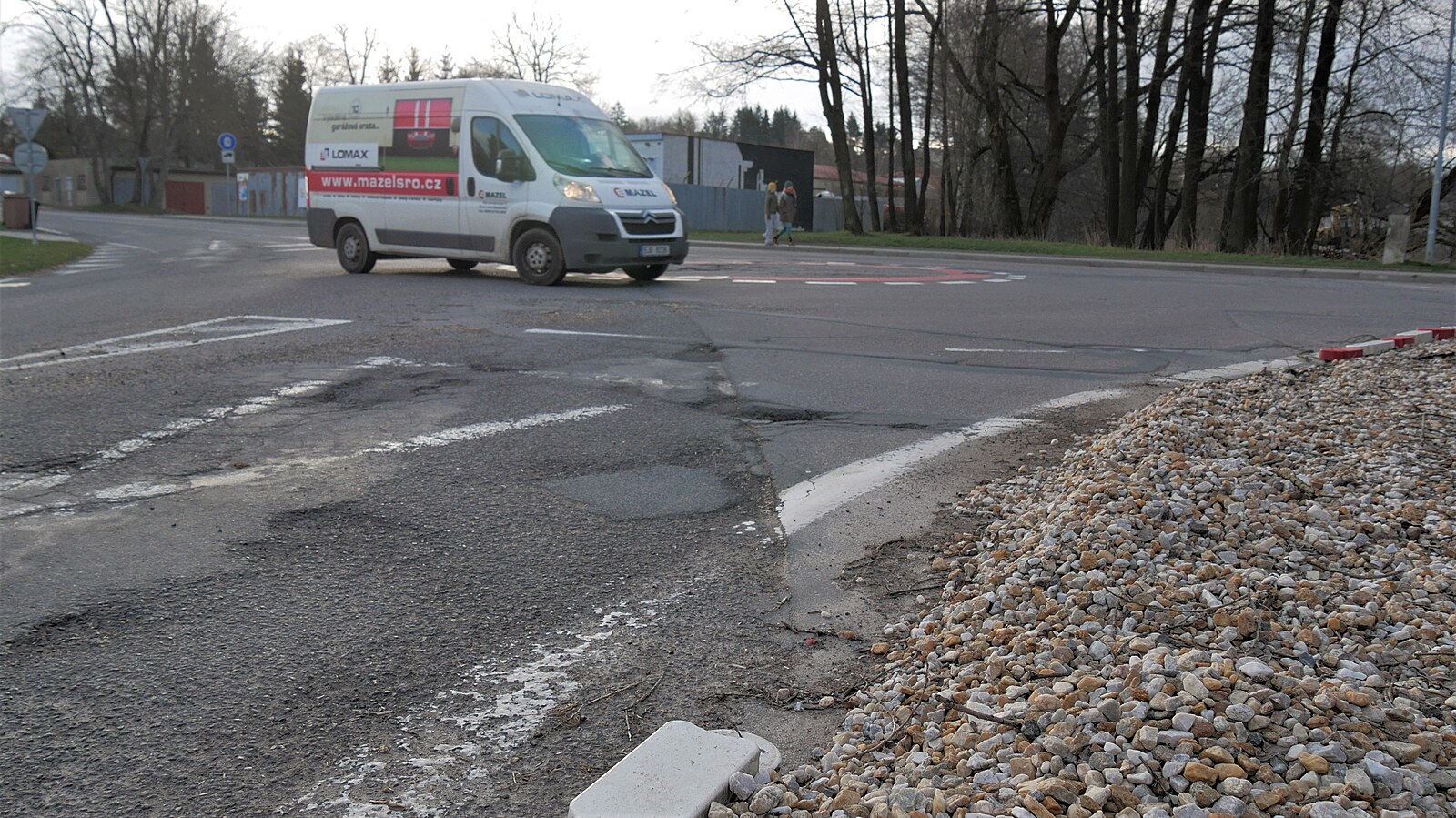 Součástí rekonstrukce Vysocké ulice měla být i proměna miniokružní křižovatky s ulicemi Wonkova a Studentská. Je plná děr, výtluků a nechybějí ani propadlé kanály.
