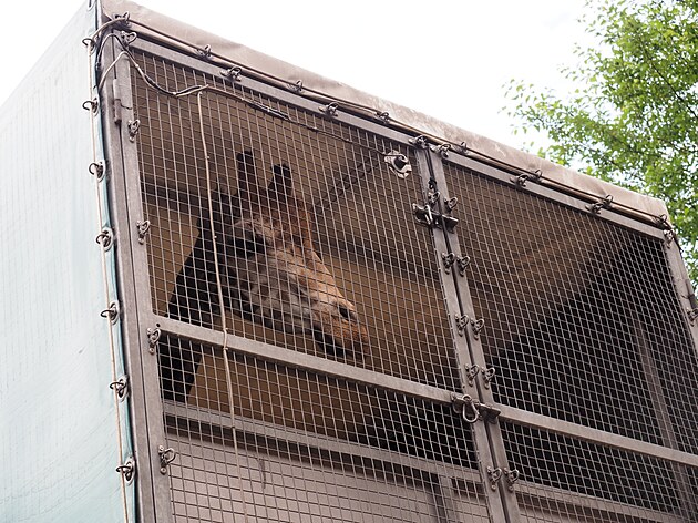 První z mladých žirafích samců už dorazil do jihlavské zoo. (10. července 2025)