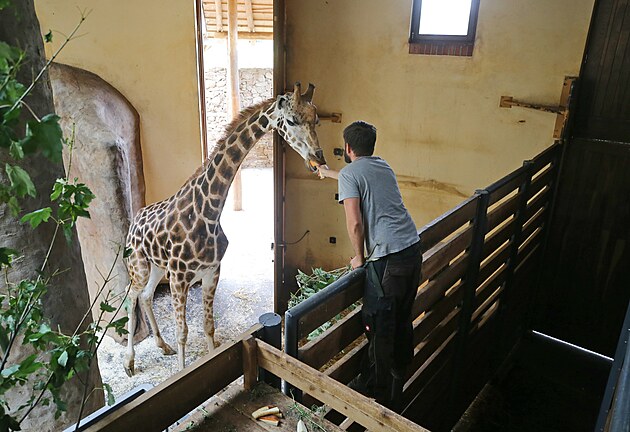 První z nových žirafích samců si zvyká na svůj nový domov. Do jihlavské zoo přicestoval v minulém týdnu z Ostravy.
