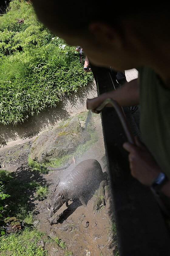 Podobně se ochlazují babirusy, kterým chovatelé udělali brouzdaliště s bahnem.