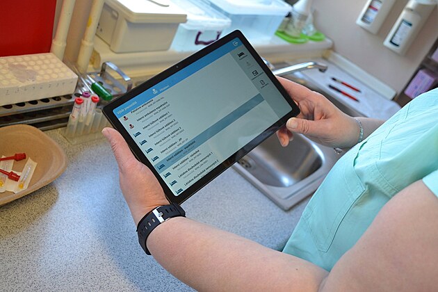 Zdravotníci ve Valašském Meziříčí využívají při práci moderní tablety s integrovaným informačním systémem. (2022)