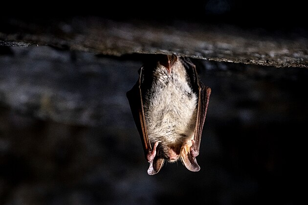 V břidlicových štolách u Vítkova v Oderských horách zimuje i netopýr ušatý snadno rozpoznatelný podle velkých uší.