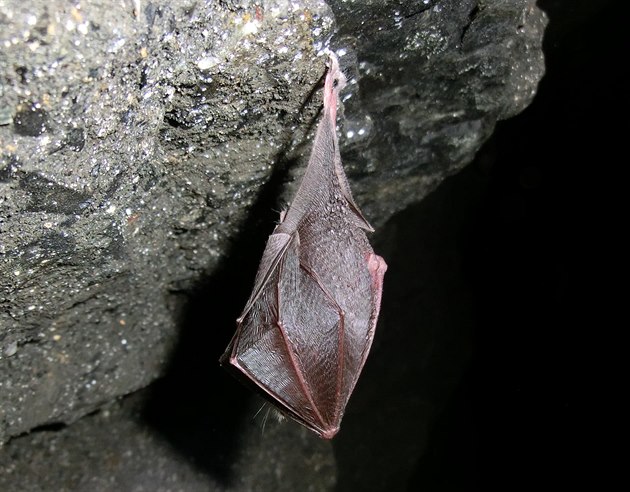 Kriticky ohrožený vrápenec malý, který přezimuje v podzemí Javorového vrchu.