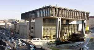 „Vznáší se“ nad původní stavbou i její dostavbou dole na zemi. Také tady použili autoři v té době převratné novinky, například strukturální fasádu, a v interiéru našel uplatnění systém Gama. Stavbu provázely, a stále provázejí, kontroverzní reakce.