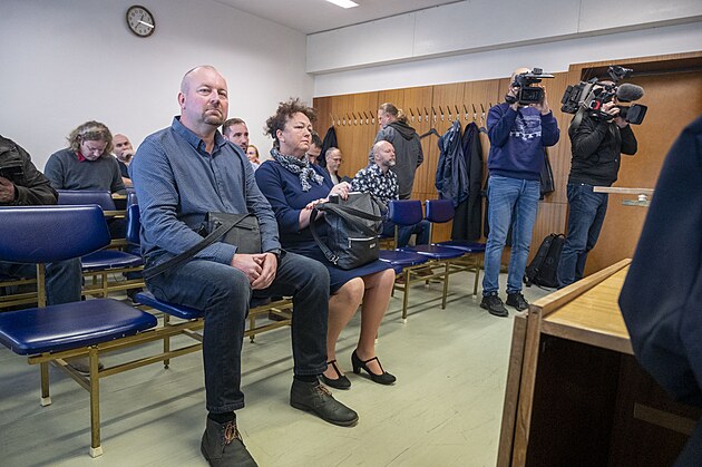 Velitel hasičů Jiří Pochyla a pracovnice odboru životního prostředí rožnovské radnice Věra Šulová před okresním soudem ve Vsetíně. (10. dubna 2024)