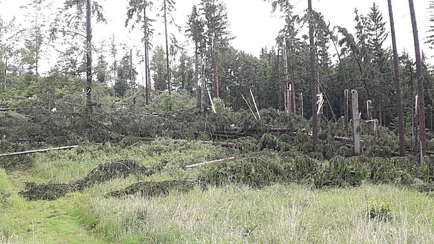 Les u Zděchova na Vsetínsku poničený takzvaným downburstem ve čtvrtek 5. června 2025 po 20.00.
