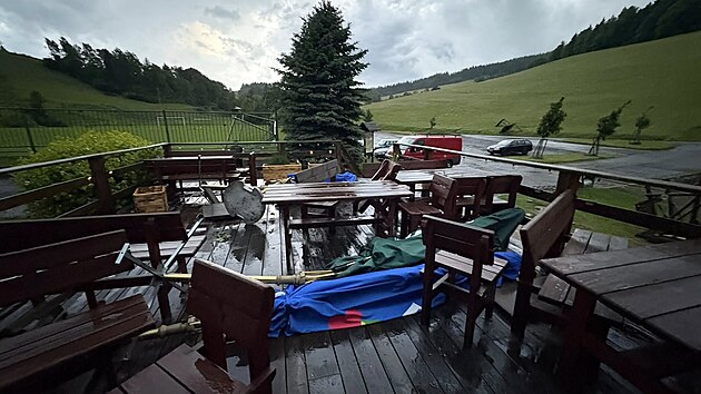 Zahrádka Koliby Zděchov na Vsetínsku poničená takzvaným downburstem ve čtvrtek 5. června 2025 po 20.00.