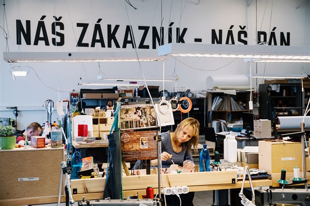 Tato firma používá ve své výrobní dílně mimo nových technologií také původní baťovské šicí stroje a na stěně visí desatero inspirované baťovskými hesly.