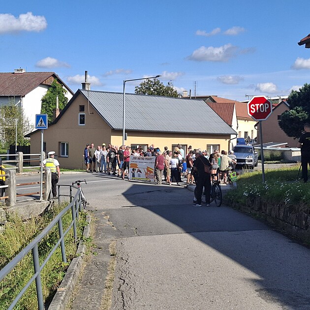 Lidé zablokovali silnici mezi Holešovem a Fryštákem na protest proti nedokončené dálnici. (11. září 2025)