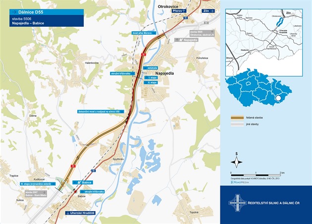 Trasa plánované dálnice D55 v úseku Napajedla – Babice
