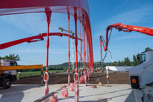 Stavbaři použili na most v Napajedlích přes 700 kubíků betonu. První řídiči se po něm projedou ještě letos v prosinci. (srpen 2025)