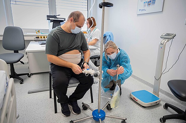 Petr Hlavica je prvním pacientem Baťovy nemocnice ve Zlíně, který doma provádí tzv. peritoneální dialýzu. Dochází přitom do specializované nové ambulance v nemocnici. (prosinec 2024)