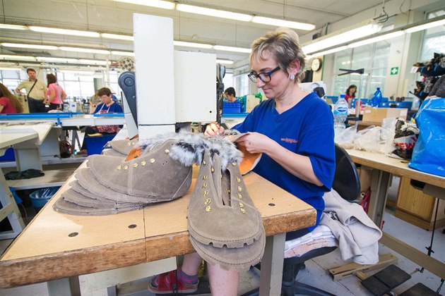 Výroba obuvi v závodě firmy Baťa v Dolním Němčí na Uherskohradišťsku