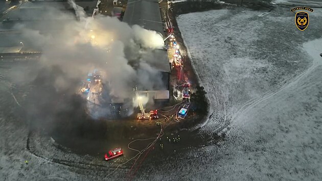 Hasiči zveřejnili video z dronu z požáru seníku v Kelči