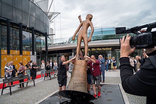 Vztyčením sochy Zlatý střevíček byl zahájen 65. ročník Zlín Film Festivalu. (květen 2025)
