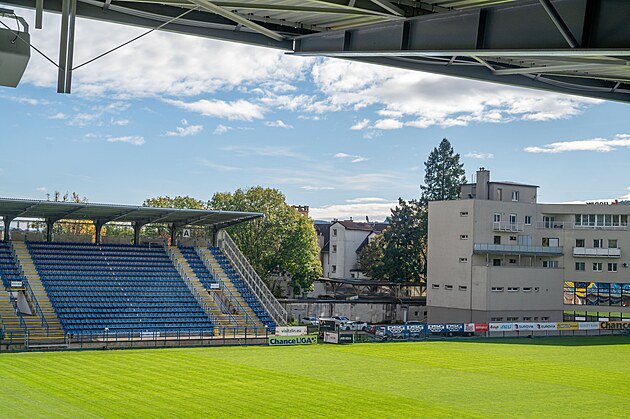 Tribuny na fotbalovém stadionu ve Zlíně (13. říjen 2025)