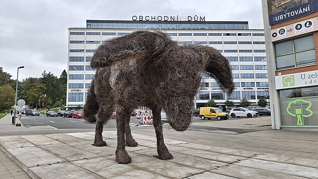 Zlínská výstava Němá tvář: Člověk a pes v současném českém výtvarném umění. Její součástí jsou i sochy v exteriéru. (září 2025)