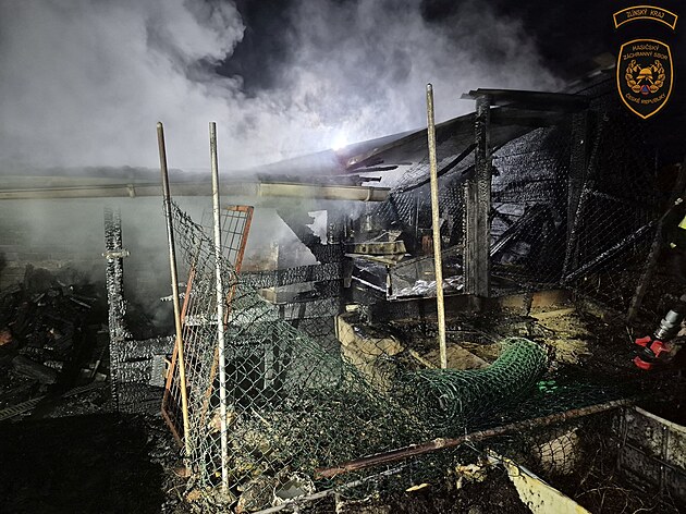 Při požáru v Újezdci u Uherského Brodu bylo zničeno hospodářské stavení, jednoho popáleného transportoval vrtulník do nemocnice. (12. října 2025)