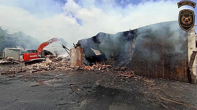 Požár pily ve Velkých Karlovicích, uvolňování konstrukcí. (17. červen 2025)