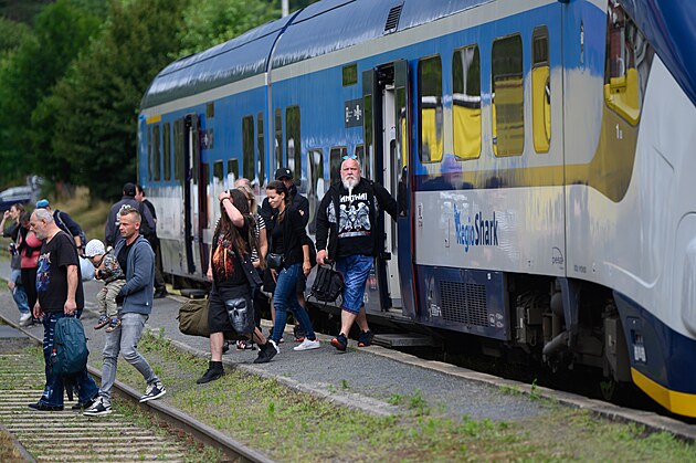 Festival Masters of Rock 2025 ve Vizovicích. Návštěvníci přijíždějí na nádraží. (10. července 2025)