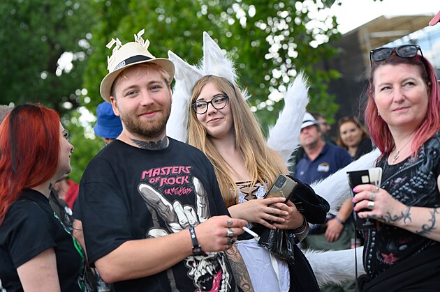 Festival Masters of Rock 2025 ve Vizovicích. Návštěvníci vypadají stylově. (10. července 2025)