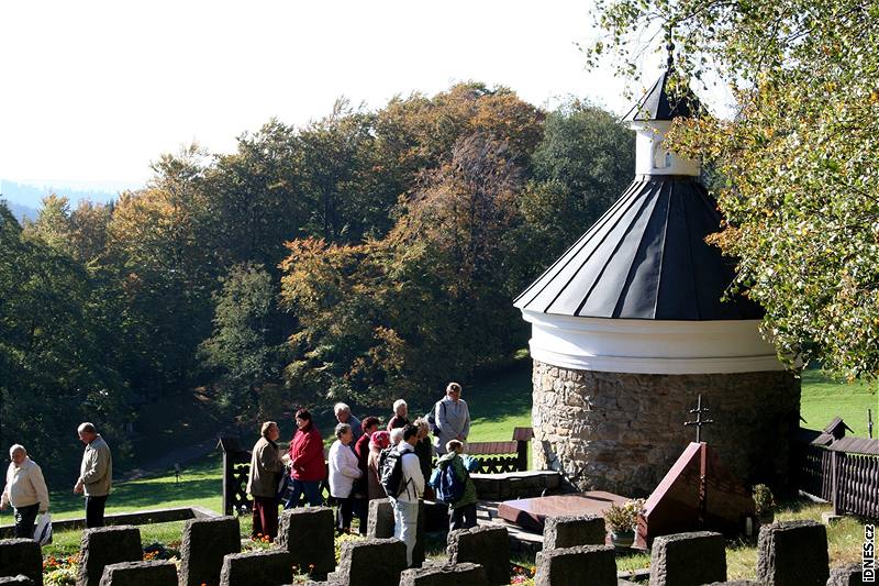 Hostýn - Poutníci u areálu hostýnského hřbitova