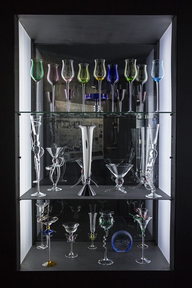 Část výstavy v Muzeu sklářství v Karolince tvoří i produkty z barveného skla.