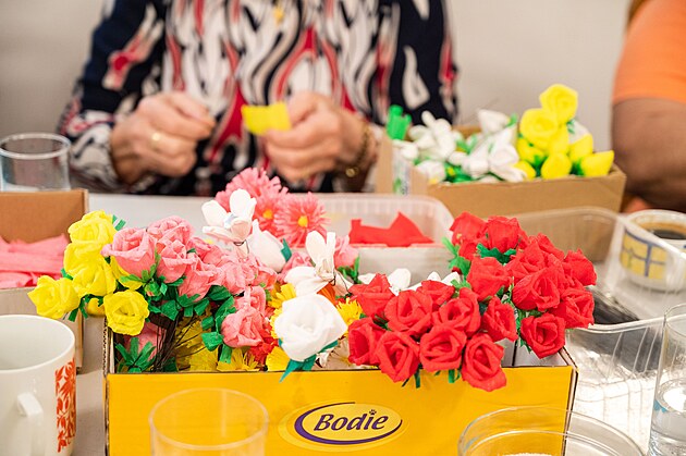Papírové růže na květnovou Jízdu králů v Kunovicích vyrábí 30 žen zhruba měsíc. Na ozdobení jednoho koně jich je potřeba 3 400. (únor 2024)