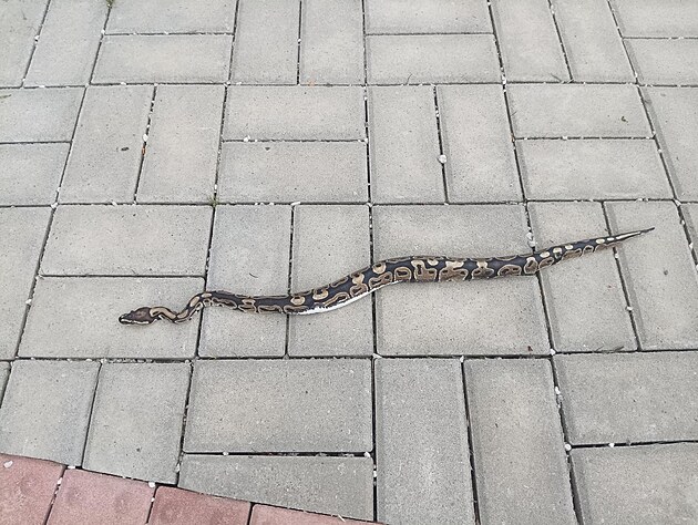 Půlmetrová krajta se plazila u hřbitova ve Valašských Kloboukách. (květen 2025)