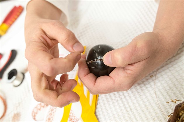 Lenka Durďáková z Uherského Hradiště předvádí techniku drátování kraslic.