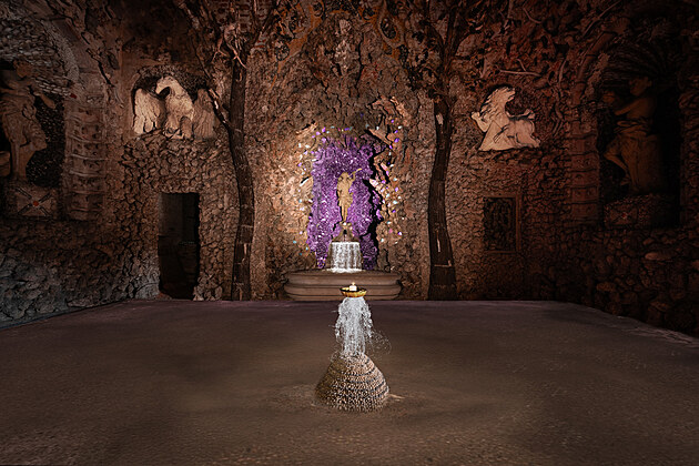 Umělé barokní jeskyně v Arcibiskupském zámku v Kroměříži jsou pokryté stovkami ametystů. Desítky let je ukrývala vrstva malty. Unikátní objev učinila vědkyně Jana Zapletalová z Univerzity Palackého v Olomouci při zkoumání štukové výzdoby zámku. Na snímku je vizualizace možné původní podoby jeskyně.