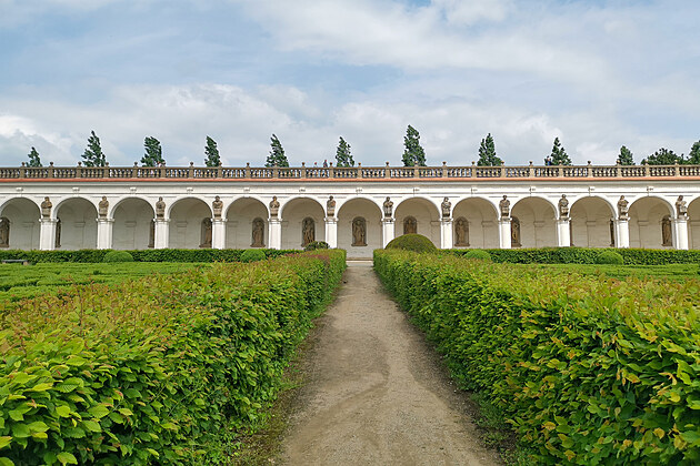 Opravená kolonáda v Květné zahradě v Kroměříži (květen 2023)