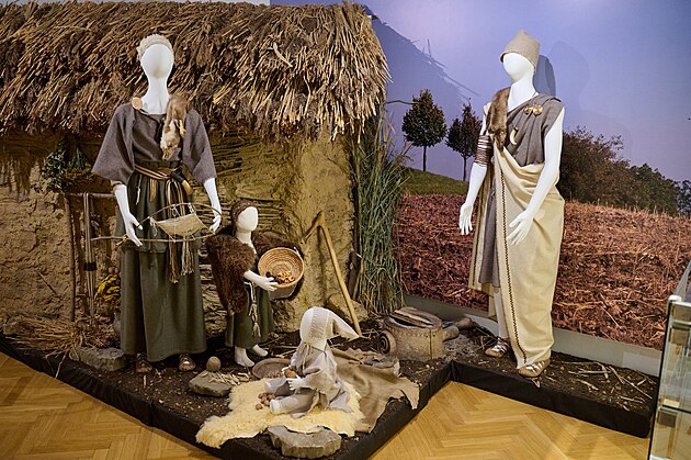 Výstava Hradisko u Kroměříže - pevnost z doby bronzové v Muzeu Kroměřížska. Na snímku ukázka dobového obydlí. (říjen 2024)