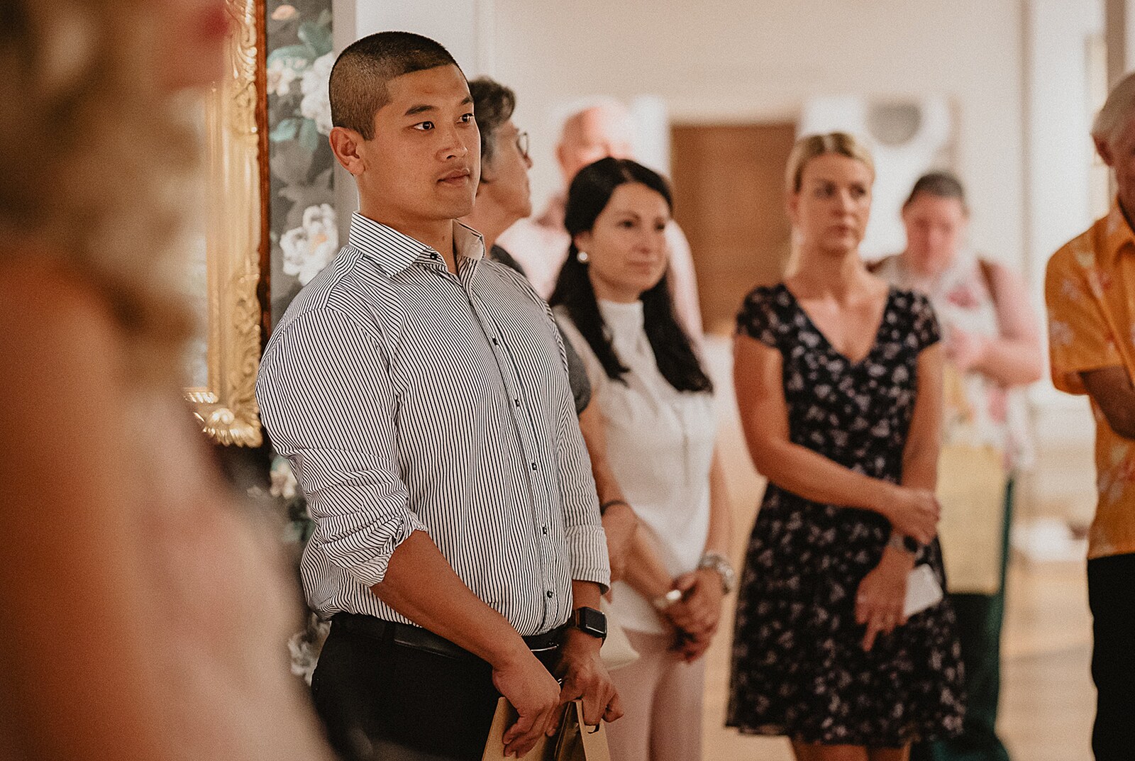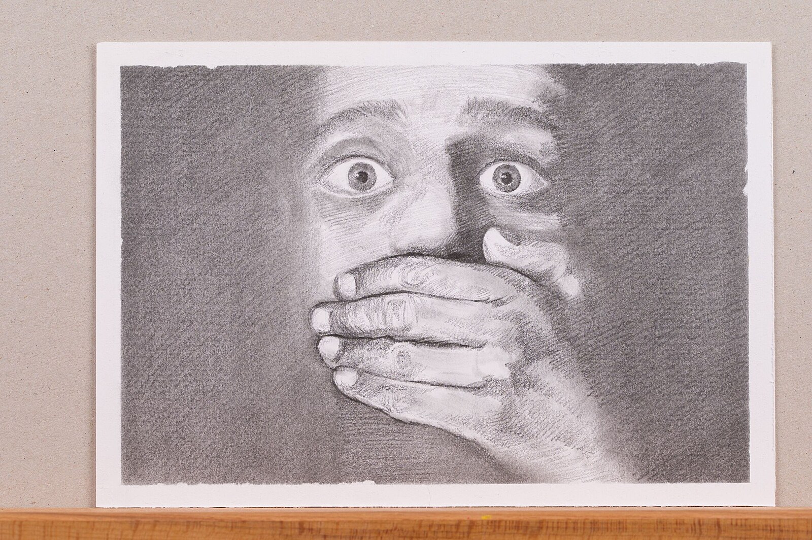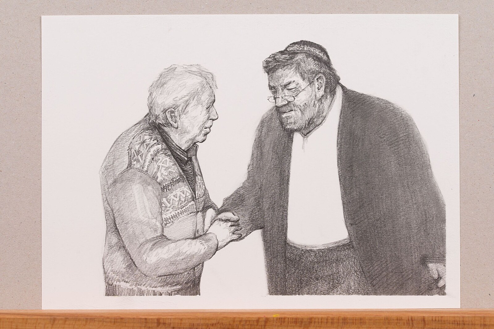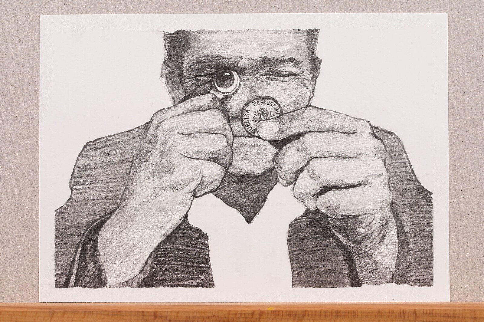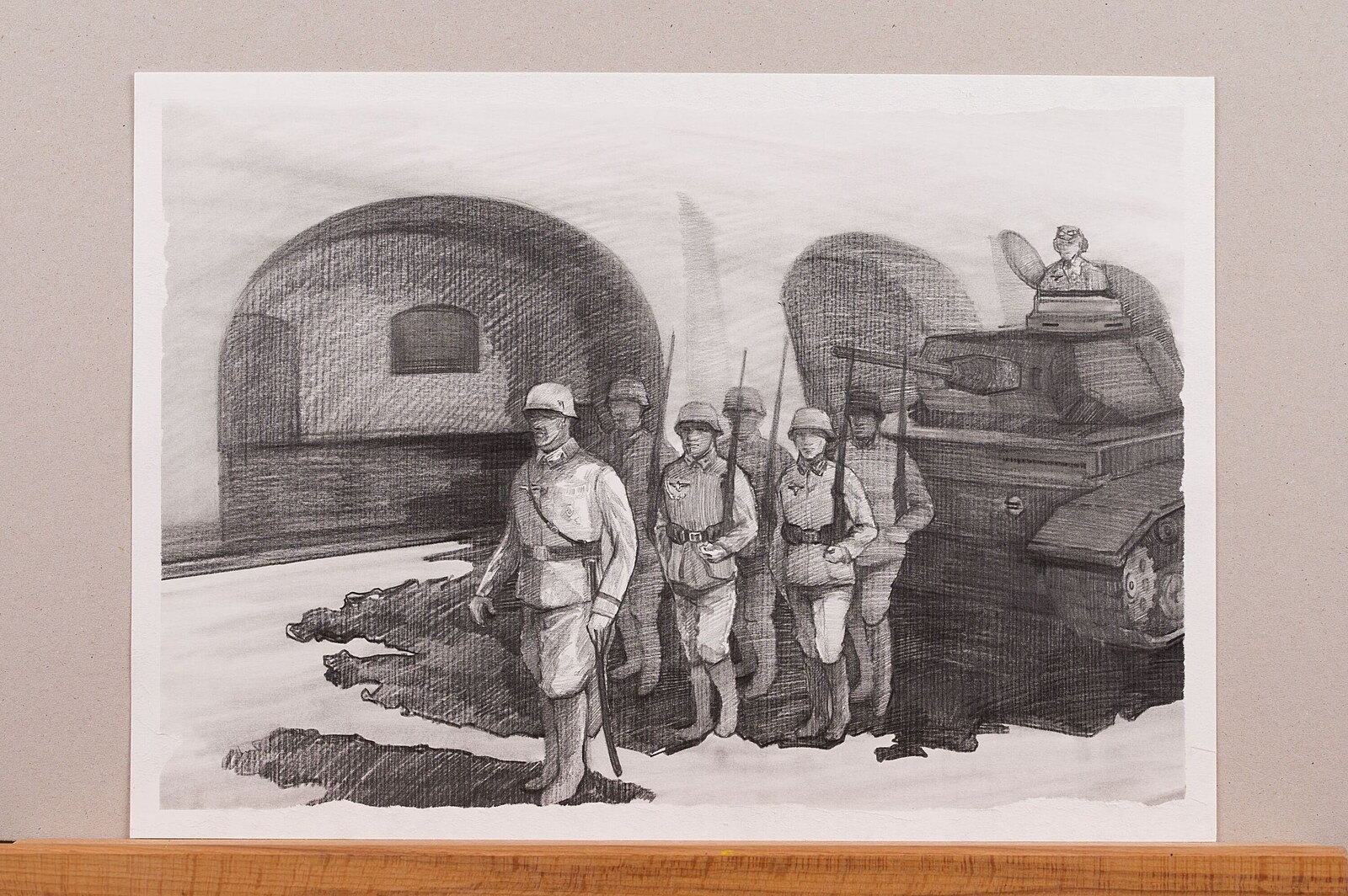 Výstava v Muzeu Kroměřížska vysvětluje moderní dějiny na životním příběhu jednoho konkrétního člověka. Na snímku je autor kreseb Han Jiang Xue (říjen 2023)