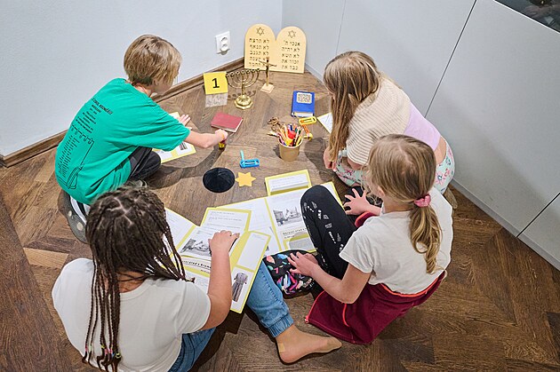 Děti ze ZŠ Oskol v Kroměříži si v Muzeu Kroměřížska vyzkoušely badatelskou činnost pod dohledem muzejní edukátorky v kultuře Martiny Malé (vlevo). (květen 2024)