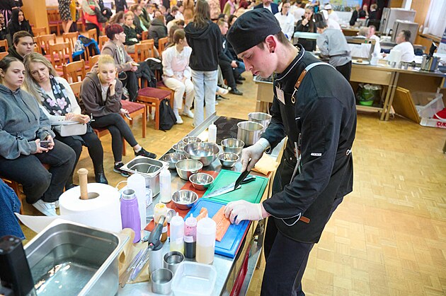 Kuchaři měli za úkol připravit lososa na dva způsoby před plným sálem lidí. (březen 2024)