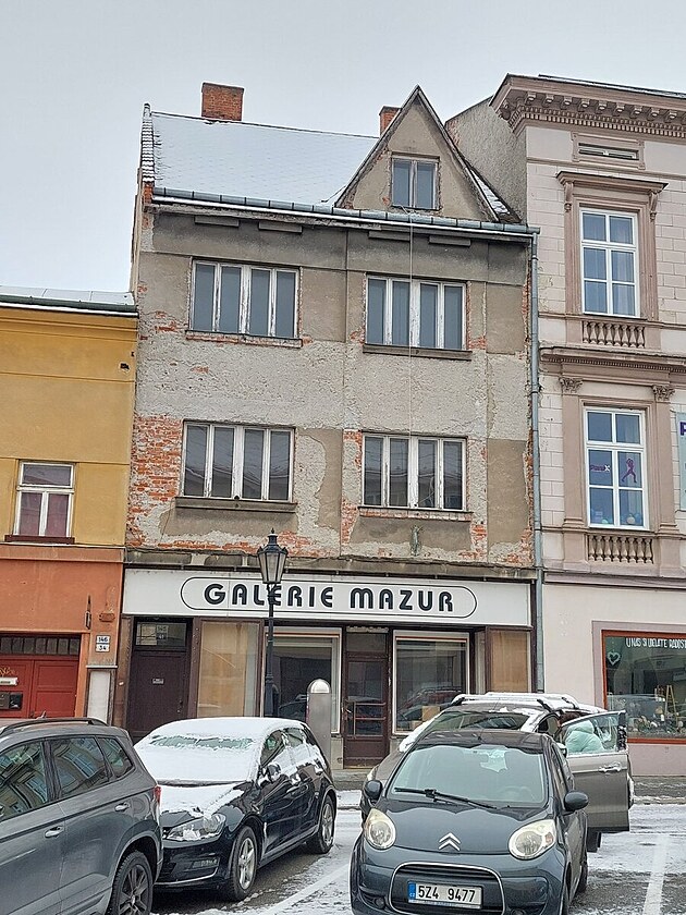 Kroměříž chce uvalit vyšší daň na budovy, které hyzdí město. Patří mezi ně i zanedbaná budova na Riegrově náměstí. (březen 2025)