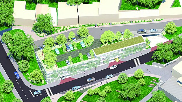 Vizualizace nového parkovacího domu u městských lázní ve Zlíně